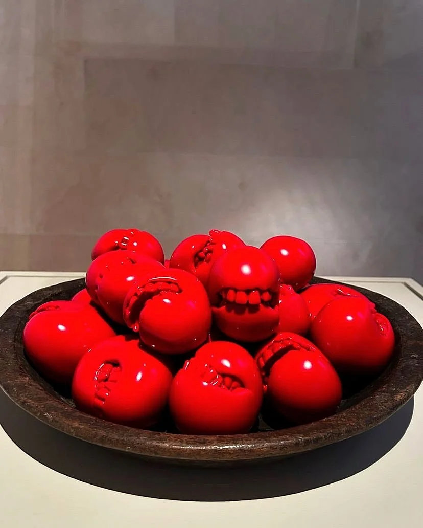 In Red Platter (21), Pondick presents a surreal reinterpretation of a bowl of apples, incorporating casts of her own mouth. This striking work evokes themes of consumption, mortality, and transformation, balancing humor and unease. It exemplifies Pondick’s ongoing exploration of the intersection between the body and the organic, as well as her investigation of hybridity and metamorphosis.